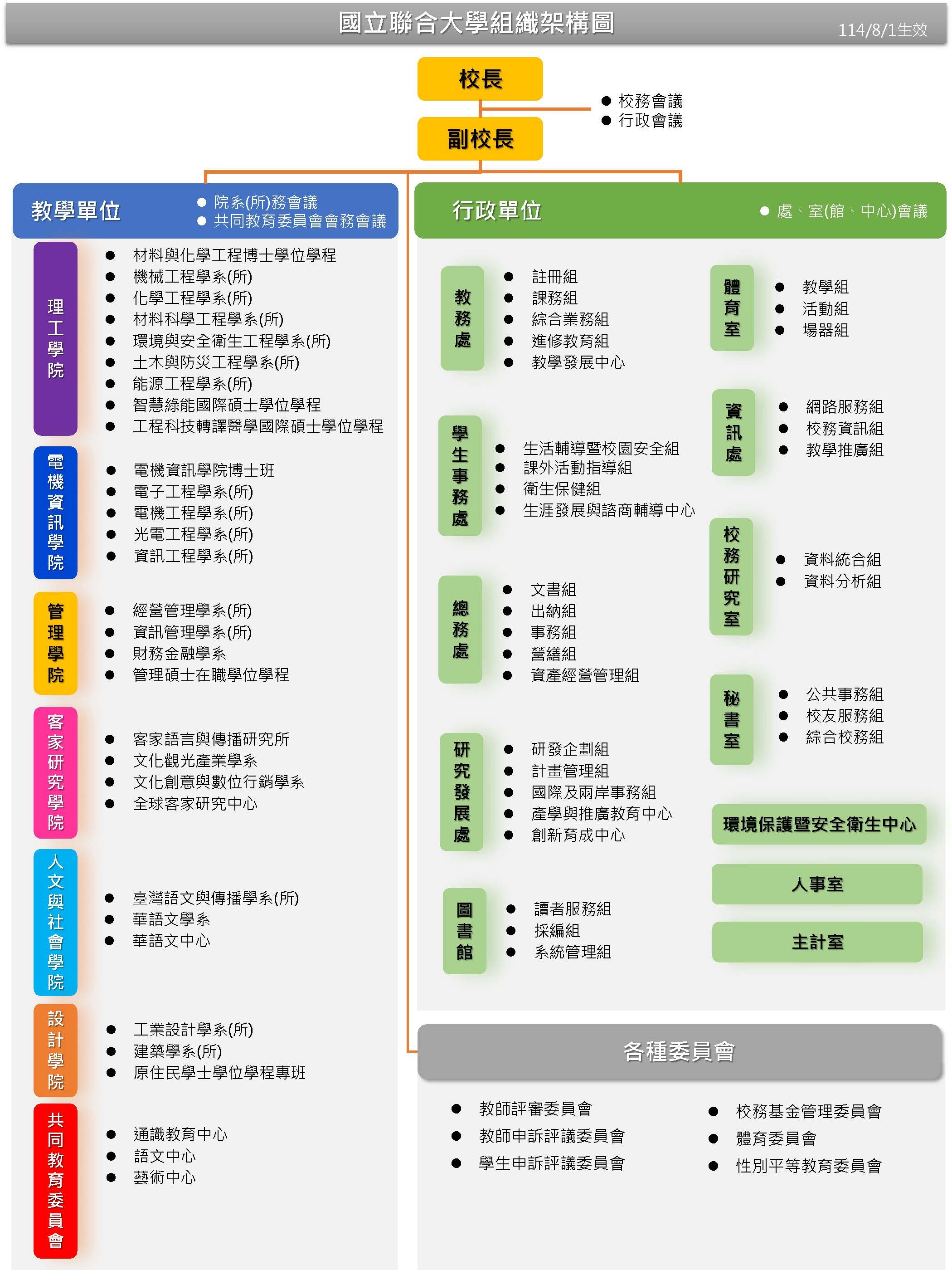 ◎詳細內容請參閱人事室/國立聯合大學組織規程 。